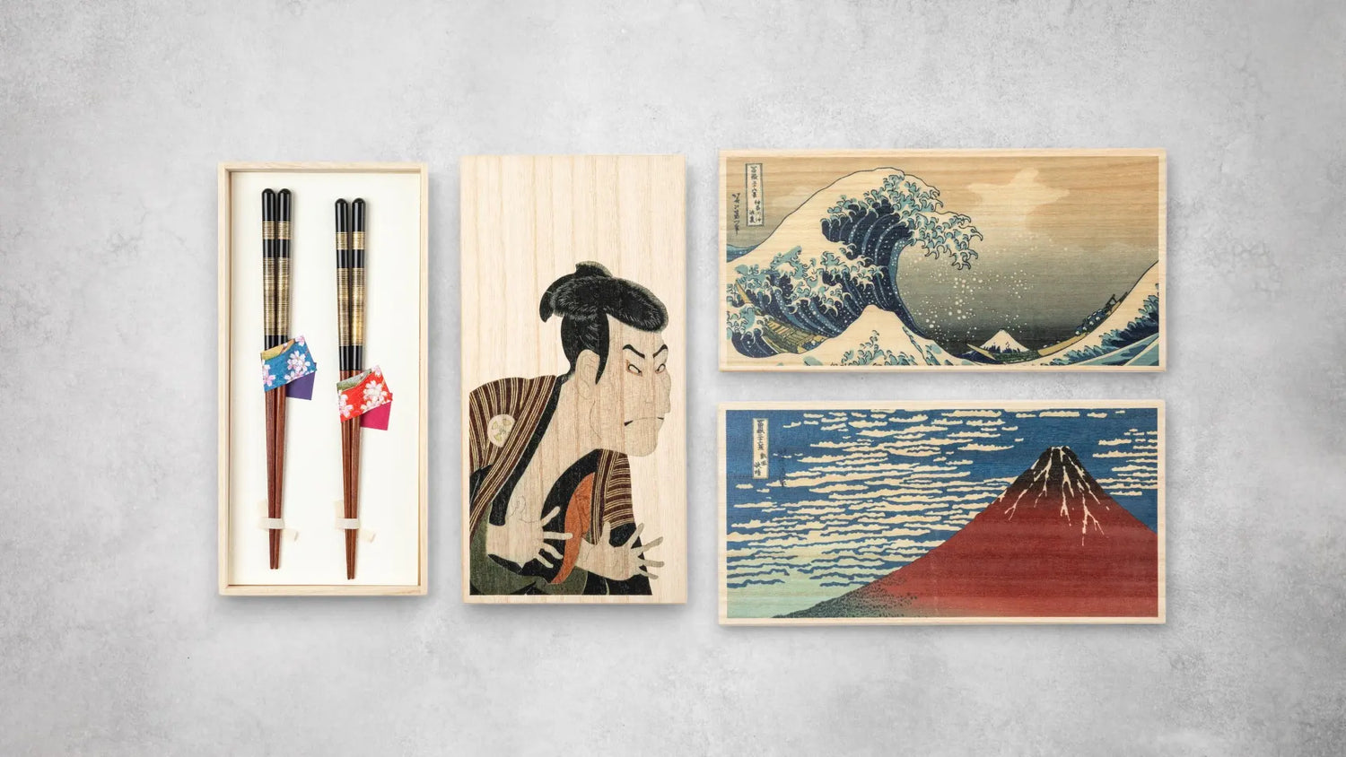 Sakuraso Chopsticks Set with Hokusai Sharaku Paulownia Gift Box