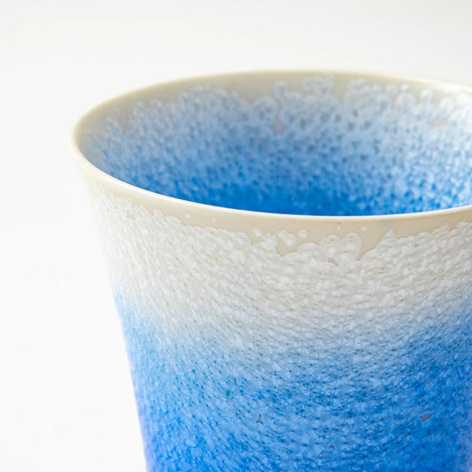 Tamba Ware Large Faceted Mug Ash Glaze Light Blue