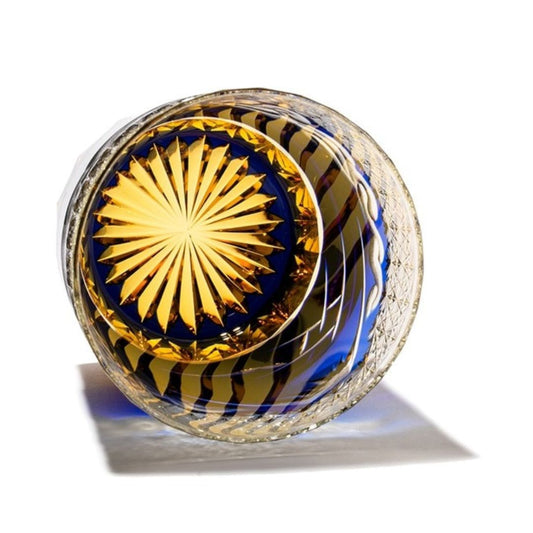 Edo Kiriko Amber Azure Whiskey Glass Sazanami