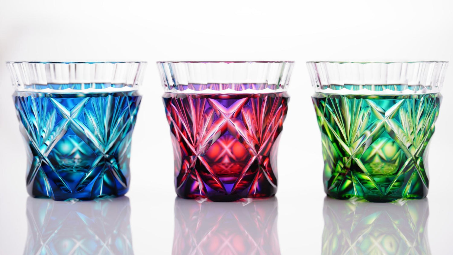 Satsuma Kiriko Two-tone Sake Glass Lapis Green