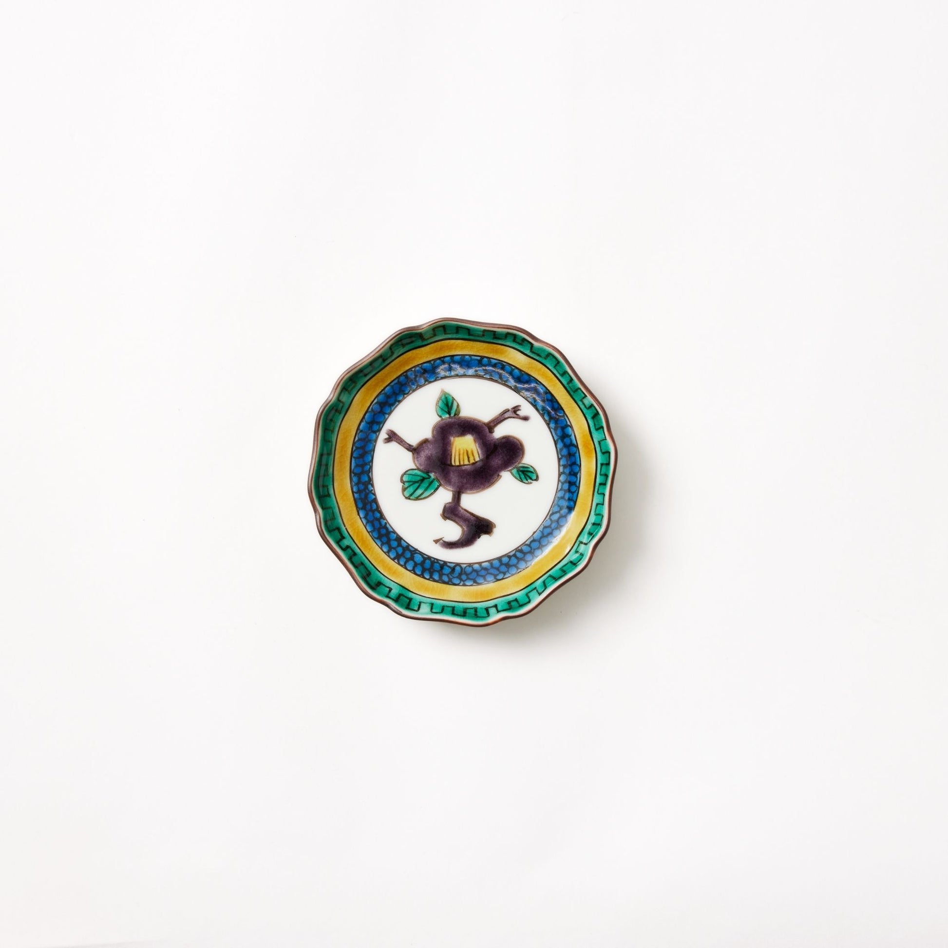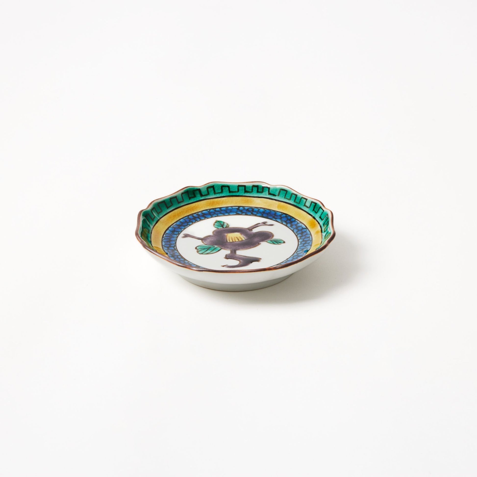 Introducing the exquisite Camellia Patterned Petal Rimmed Circle Plate by Kutani Bitouen. This plate is a true masterpiece, showcasing the harmony between traditional Japanese artistry and modern design.
