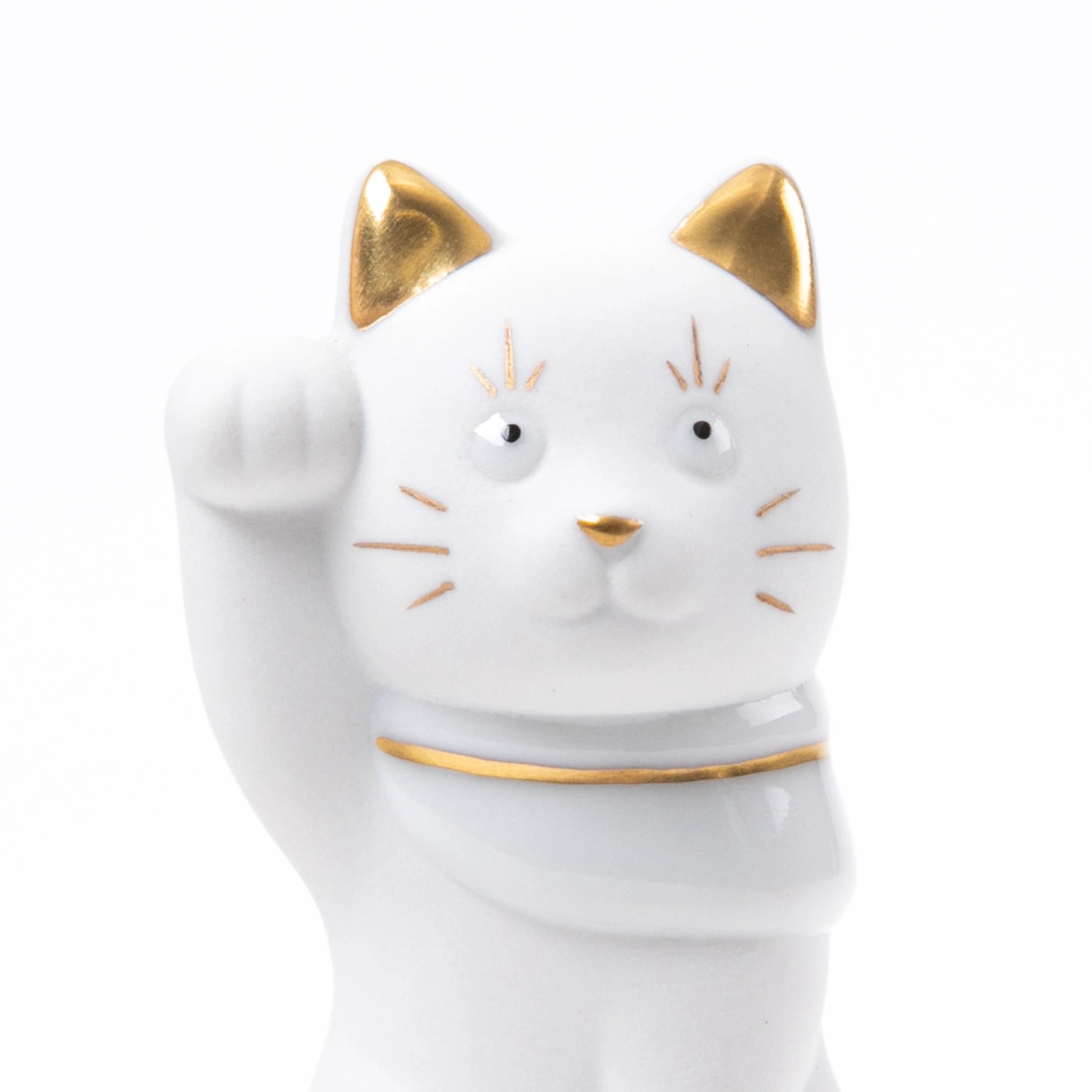 Choemon Kiln Kutani Right Handed White Maneki Neko - Bell Rider