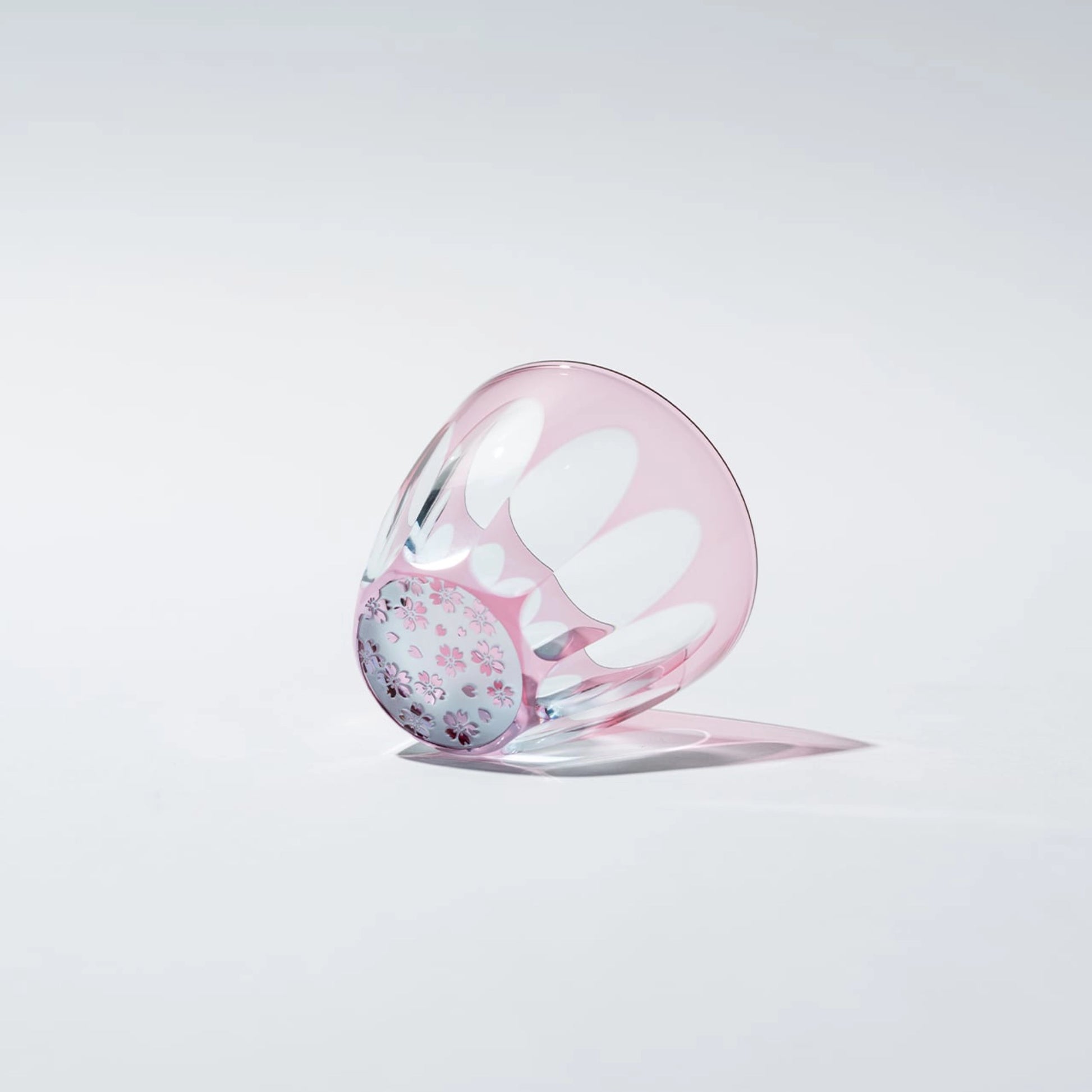 Inspired by the ephemeral beauty of spring, the Edo Kiriko Two-Tone Cherry Blossom Sake Cup by Shiina-Kiriko features a delicate cascade of sakura petals in full bloom. Hand-cut through layers of soft pink and pale blue glass, each petal is rendered with stunning precision—creating the impression of flowers gently drifting across water.