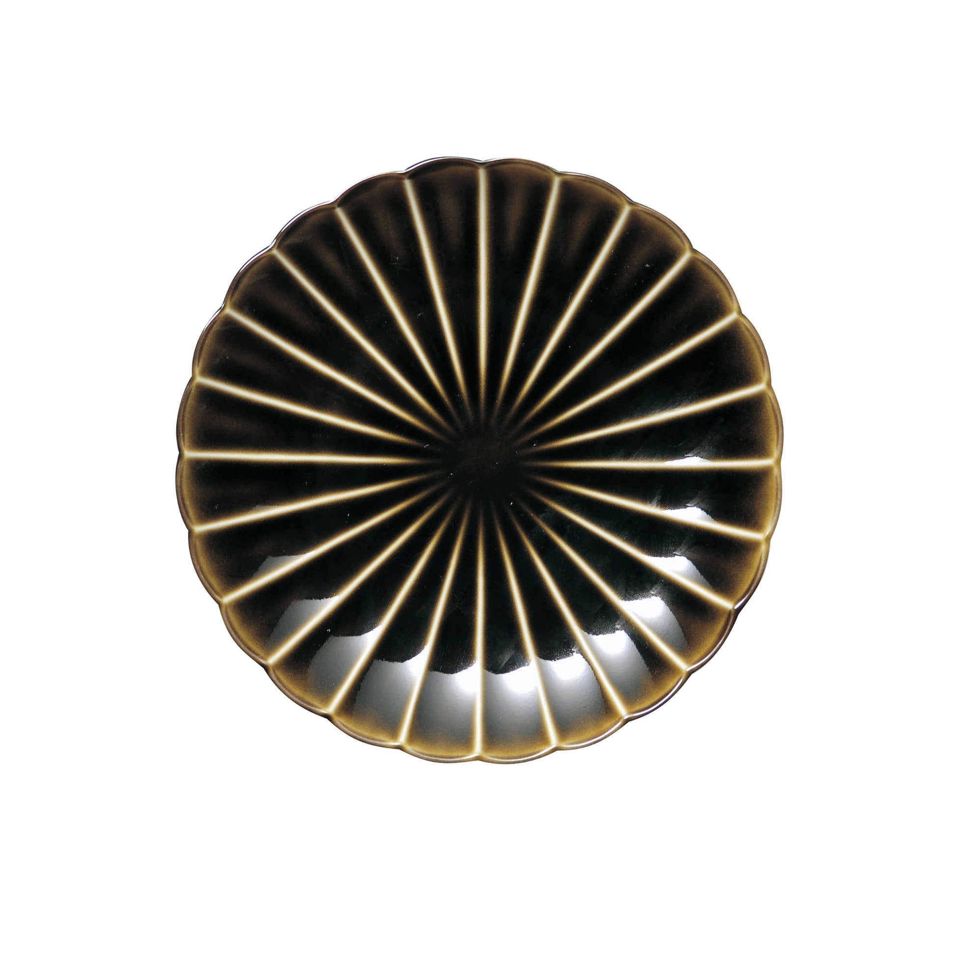 These exquisite Mino-yaki dinner plates are meticulously crafted in the iconic form of Japan's timeless chrysanthemum motif (Kikumon). A special glaze has been used to create a chic and deep color finish reminiscent of Japanese lacquerware.
