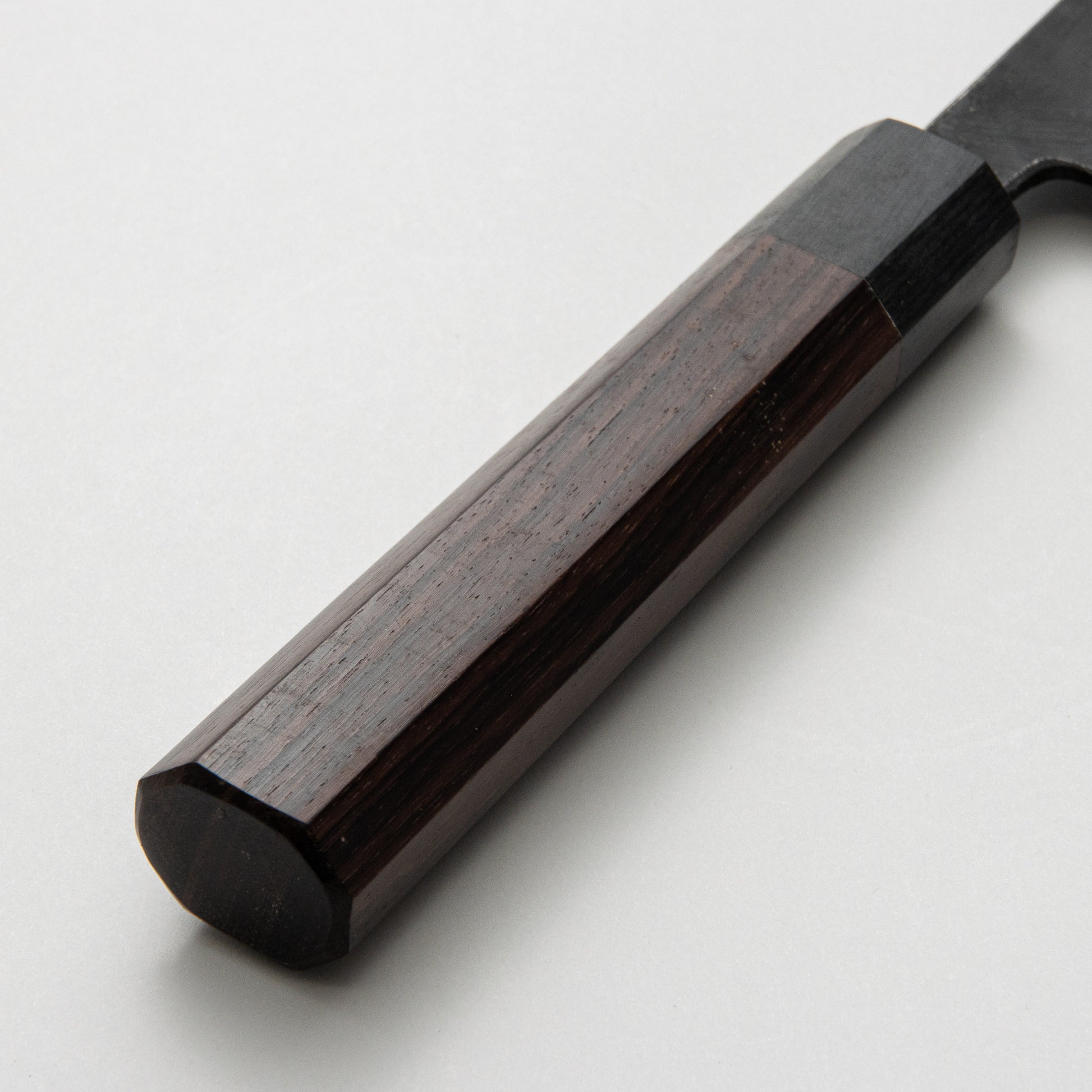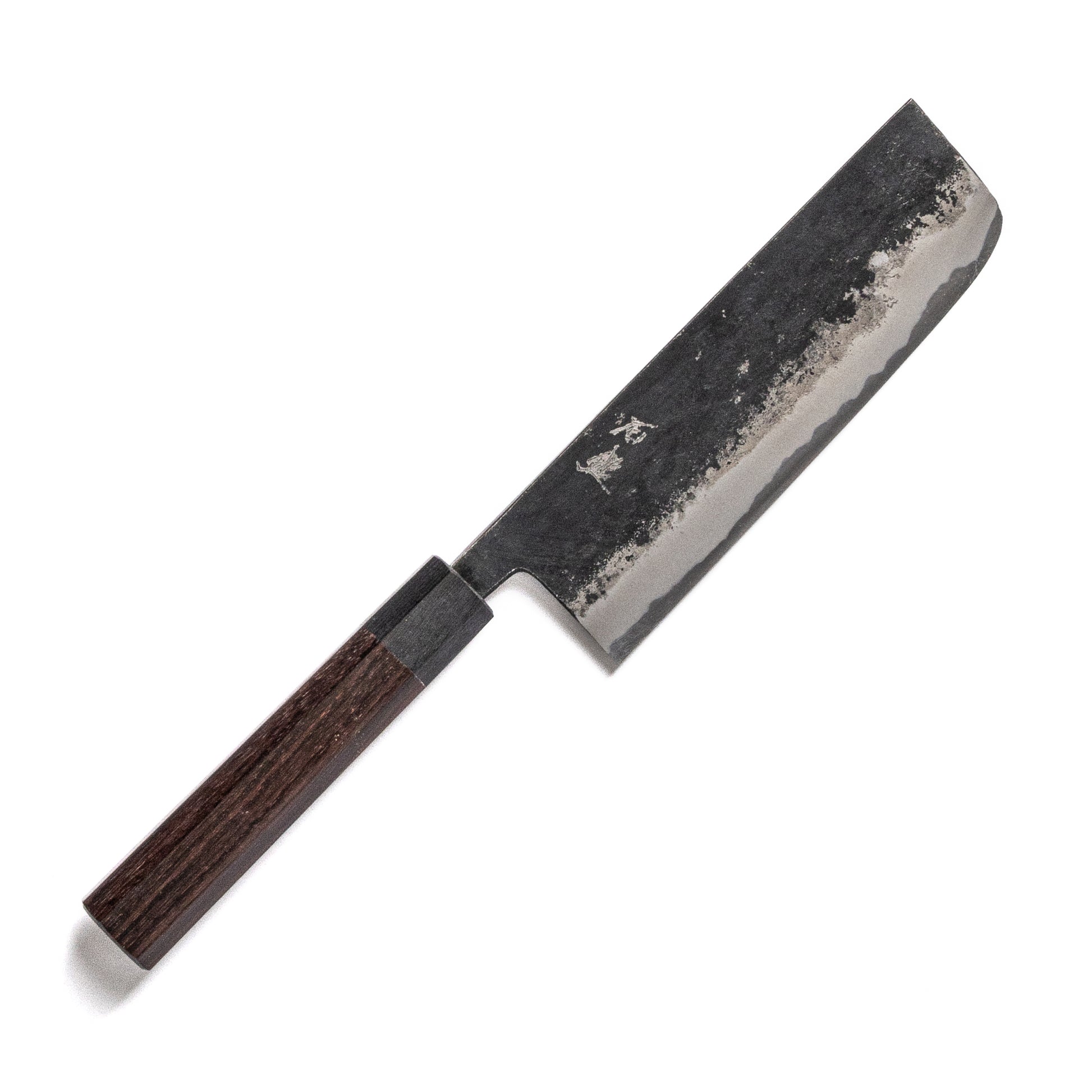 The Ishizuchi Nakiri Knife - a true culinary gem, crafted from Aogami Blue Super steel with stunning Rosewood Handle is renowned for its remarkable durability and sharpness.