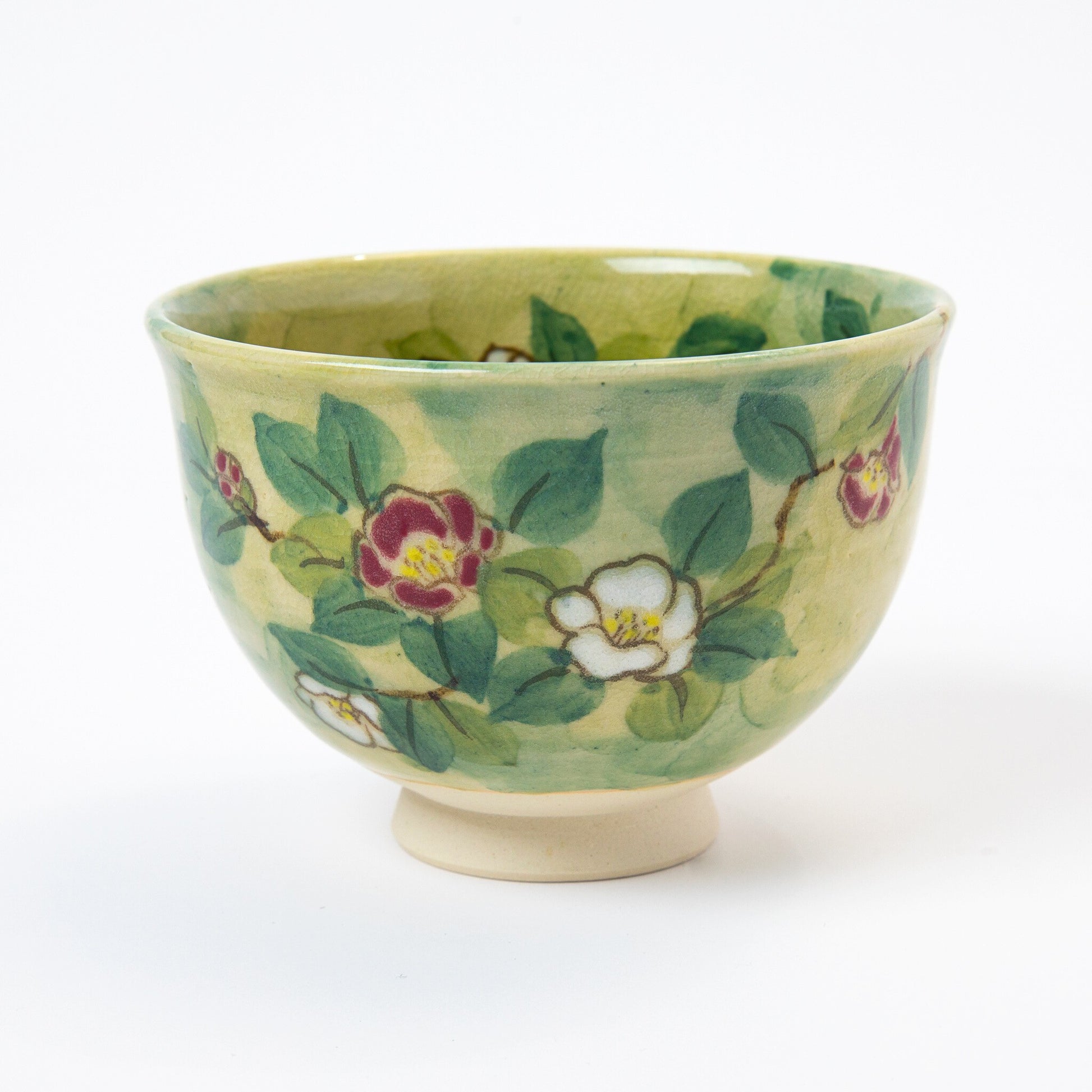 A celebration of craftsmanship, seasonality, and ritual. This exclusive set brings together artisan-made tools and organic tea for an elevated matcha experience. At its heart is the Yabu Camellia matcha bowl, hand-painted by Tosen Kiln with soft brushwork and vivid camellia blooms. It is paired with a matching whisk stand, also crafted by Tosen, offering both beauty and practical care for your chasen.