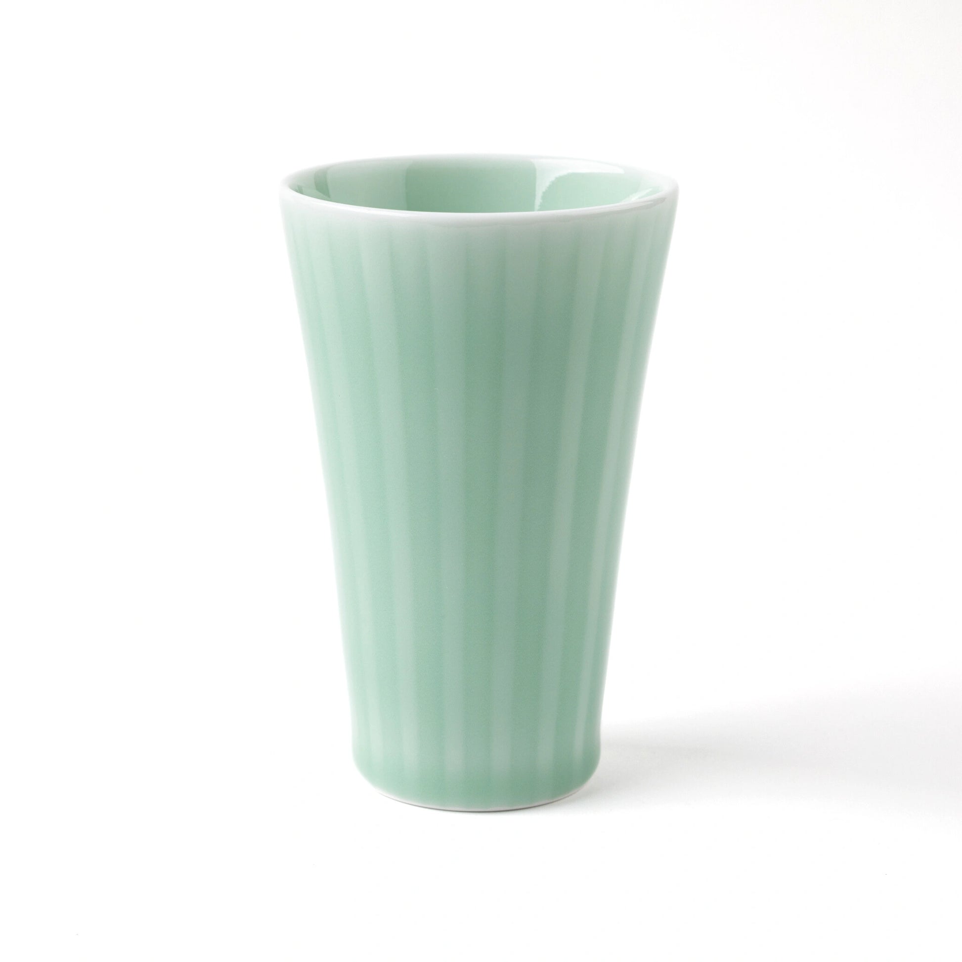 The tumbler's comfortable size and smooth porcelain surface make it a pleasure to hold, while its microwave and dishwasher-safe design ensures effortless cleaning and everyday use. Enjoy a refreshing iced tea, steaming coffee, or any other favored beverage. From the heritage-rich celadon glaze to its modern versatility, this tumbler will become a treasured part of your home.
