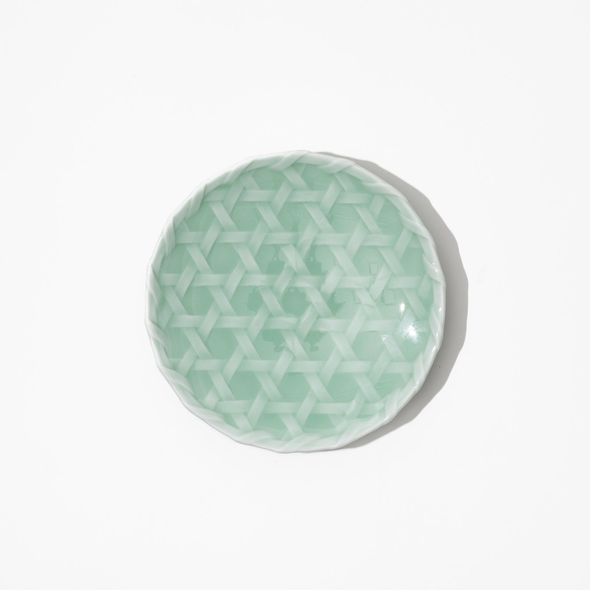 Nabeshima Celadon Porcelain Woven Bamboo Small Plate