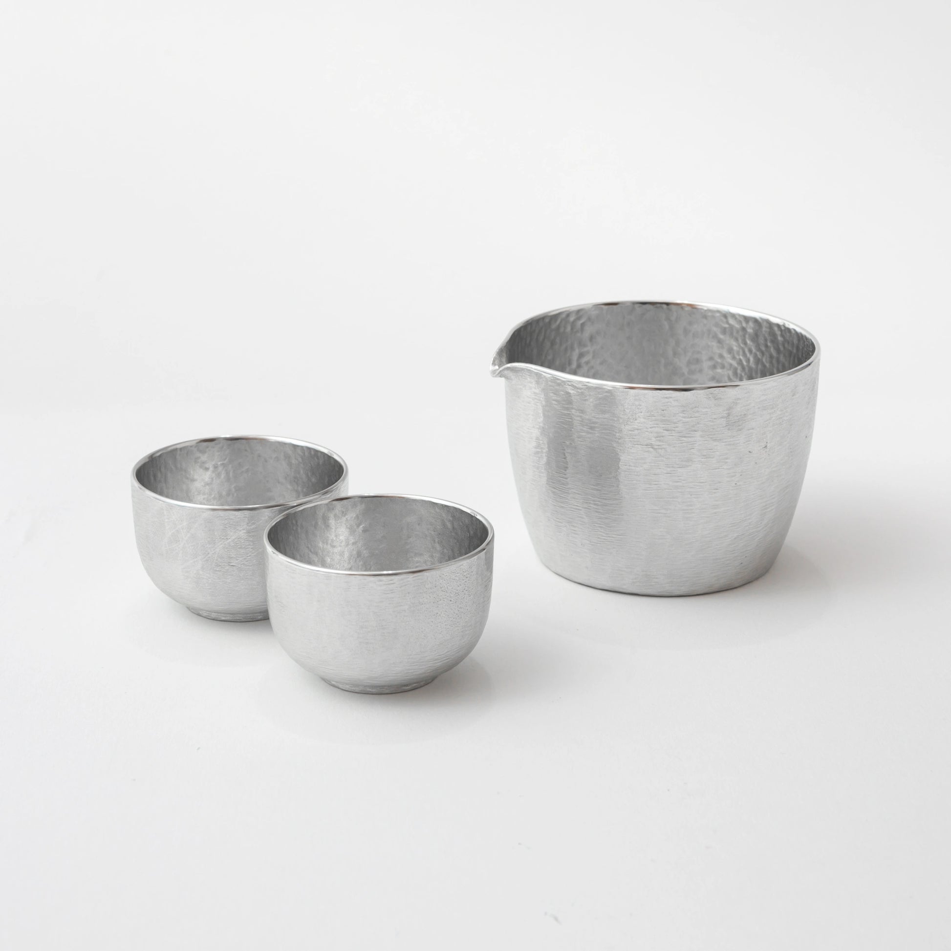 Elevate your sushi dinners with Silky Katakuchi Sake Set, crafted from high-quality tin.