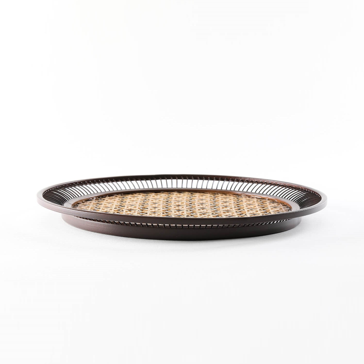 Indulge in the exquisite craftsmanship of Suruga Bamboo with this captivating piece. The tray's surface features meticulous bamboo weaving, adorned with a fusion of star and hexagonal patterns, while the reverse side boasts thin bamboo strips intricately woven into a herringbone-like design.