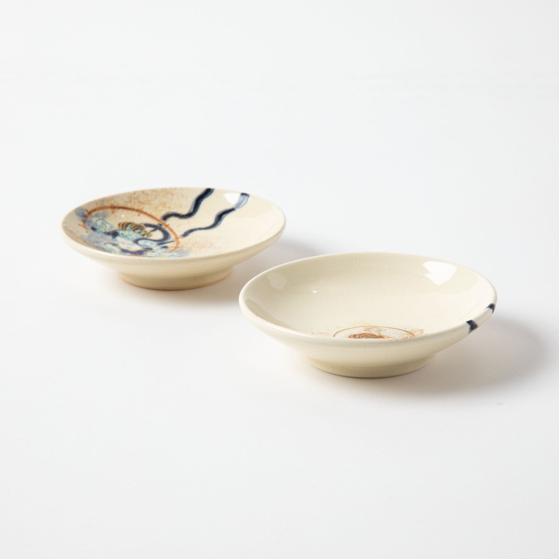 The essence of Japanese tradition and mythology comes alive in these exquisite plates. Each piece is a unique work of art, handcrafted with care and precision to reflect the timeless allure of Japanese craftsmanship. Whether used for serving appetizers, or desserts or as decorative accents in your home, the Gods of Wind and Thunder Plates are sure to captivate with their beauty and symbolism, adding a touch of elegance to any occasion.